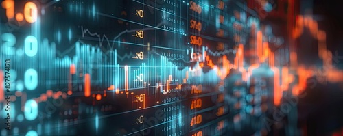 Fototapeta premium Digital stock market chart with vibrant neon colors displaying financial data...