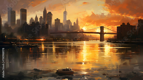 © yonshan, Fototapeta premium digital sunset dusk city scene graphic poster web page PPT background