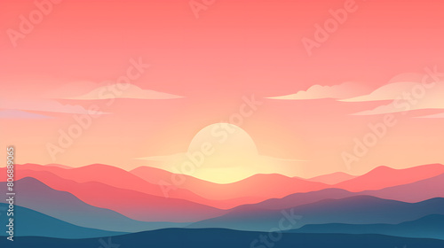 © yonshan, Obraz premium Digital sunset flat illustration graphic poster background