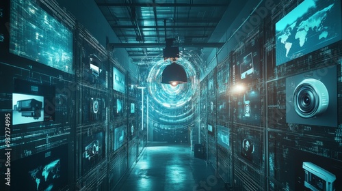 Fototapeta premium Digital Surveillance Corridor.