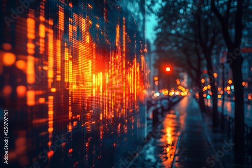 © Tetiana, Naklejka premium Digital table showing 3D holographic charts and graphs, generated with AI