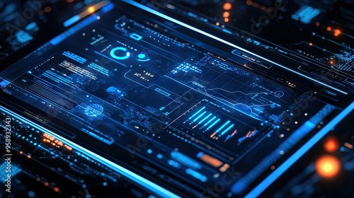 Obraz premium Digital tablet displaying a complex graph with analytics icons and technology overlays