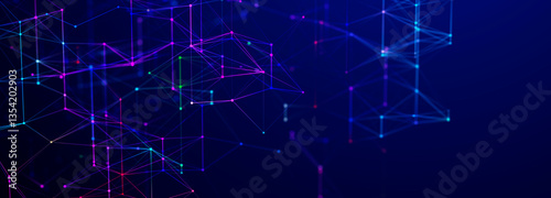 © Ginger Hamster, Obraz premium Digital technological background. Abstract structure with connected dots and lines. Big data. 3D rendering.