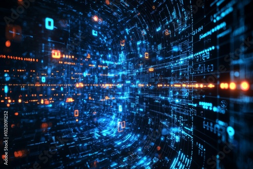 © dendyh7, Fototapeta premium Digital Technology background of data and network created with Generative AI