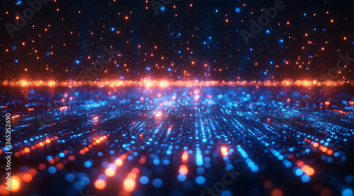 © Muhammad, Obraz premium Digital technology background with blue light rays and binary code