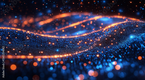 © Muhammad, Obraz premium Digital technology background with blue light rays and binary code