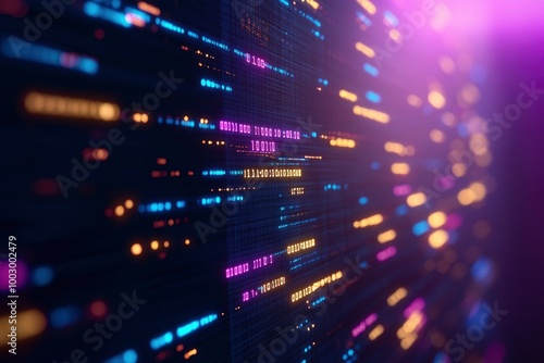 © MEHDI, Fototapeta premium Digital technology background with glowing elements of code and data in bright blue and purple color