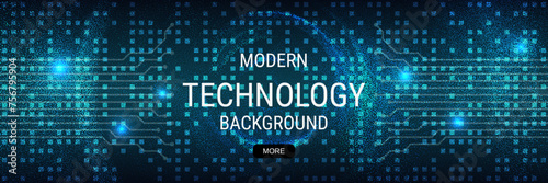 © Ulvur, Obraz premium Digital technology banner vector design template. Future technology, cyberspace, virtual reality concept illustration