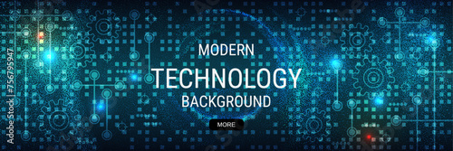Obraz premium Digital technology banner vector design template. Future technology,...