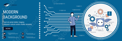 © Ulvur, Obraz premium Digital technology banner vector design template. Green energy concept