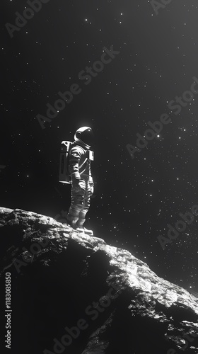 © chujun, Obraz premium Digital technology black and white astronaut and space poster background