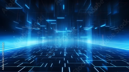 © chujun, Obraz premium digital technology blue grid point line light beam poster background