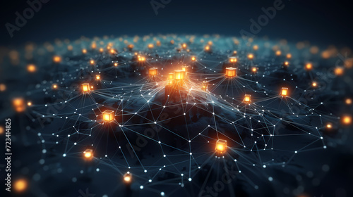 Fototapeta premium Digital technology blue rhythm wavy lines abstract graphic poster web page...