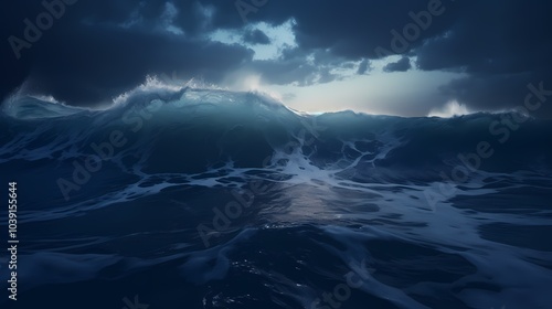 © chujun, Naklejka premium Digital technology blue wave poster web page background
