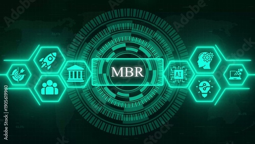 Fototapeta premium Digital technology concept with M B R and various on a green background
