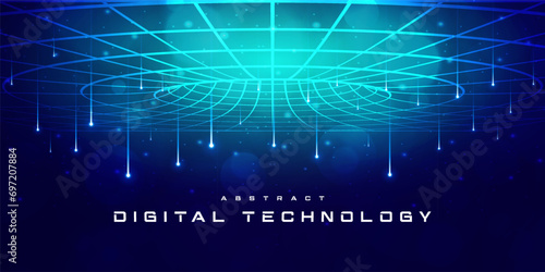 Naklejka premium Digital technology futuristic blue green background, internet network...
