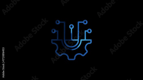 © AR Rahman, Fototapeta premium Digital technology gear icon illustrating network and engineering innovation and solutions
