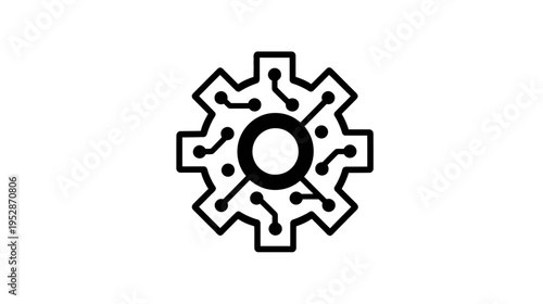 © Faa, Obraz premium Digital technology gear icon with circuit board pattern, representing settings, automation, engineering, and data processing
