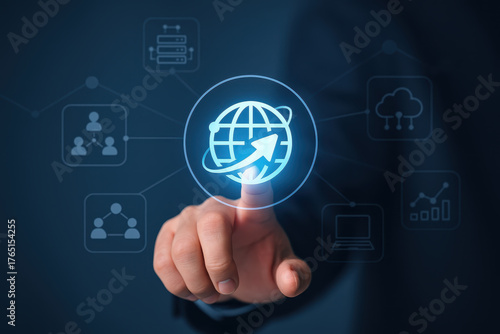 Fototapeta premium Digital technology global connectivity internet data visualization business growth innovation user interface network analytics cloud computing online services communication technology trends