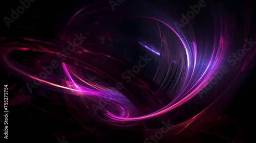 © yonshan, Naklejka premium Digital technology purple glowing glass swirl geometry horizontal poster web page PPT background