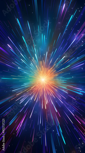 © yonshan, Fototapeta premium Digital technology purple green laser linear outline graphic poster background