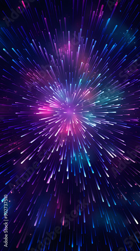 © yonshan, Fototapeta premium Digital technology purple green laser linear outline graphic poster background