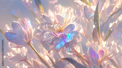 © chujun, Fototapeta premium Digital technology Rainbow-colored glass tulip illustration poster background