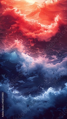 © jinzhen, Fototapeta premium Digital technology red and blue wave abstract poster background