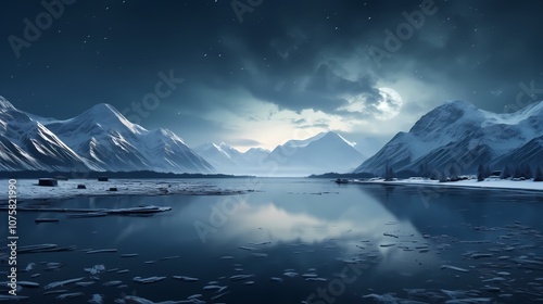 © chujun, Naklejka premium digital technology snow mountain and moon landscape poster background
