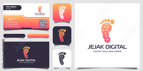 © gemilang, Fototapeta premium Digital tracking emblem. Research and analytic company. Biometric information protection. Footprint with chip pattern.