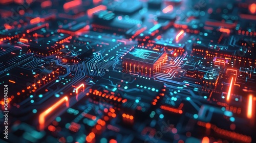 © buraratn, Obraz premium Digital transformation concept with overlapping circuits and glowing elements.