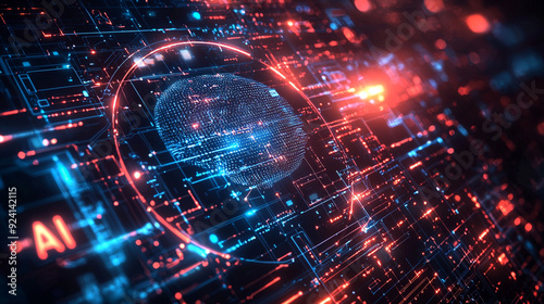 © oraziopuccio, Fototapeta premium Digital Transformation: Futuristic Artificial Brain with Vector AI Design.