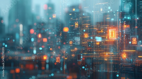 Obraz premium Digital transformation trends urban environment abstract illustration...