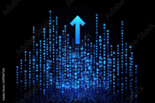 © Photo Graphic Stock, Obraz premium Digital transformation with upward arrow and binary code