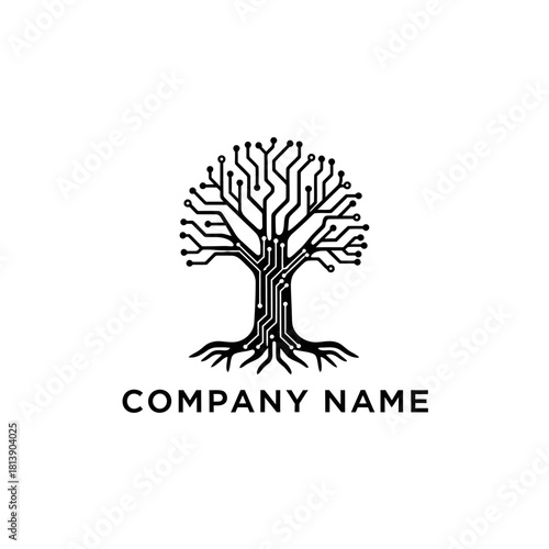 Obraz premium Digital Tree Logo Design with Circuit Board Pattern.