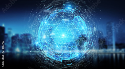Obraz premium Digital triangle exploding sphere hologram 3D rendering