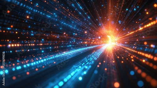 © bejopayon, Obraz premium Digital tunnel, light streaks, data flow, abstract background, tech concept