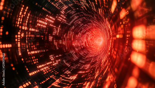 Fototapeta premium Digital tunnel with glowing red binary data and abstract patterns