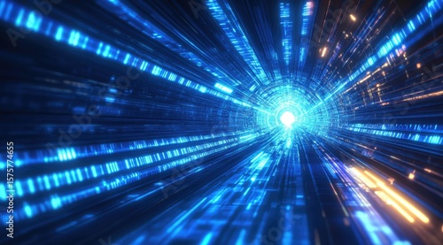 © fanthec, Fototapeta premium Digital tunnel with vibrant blue code