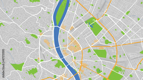 © Марян Салабай, Obraz premium digital vector map city of Budapest. You can scale it to any size.