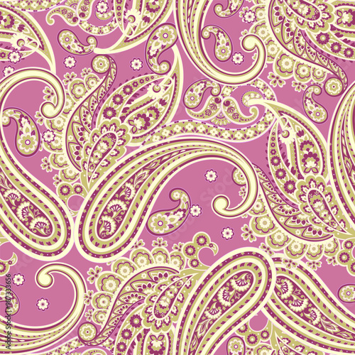 © antalogiya, Fototapeta premium Digital vector textile print. Seamless Design suitable for covers, fabrics, textiles, wrapping paper, featuring an antique Thai pattern Paisley Indian motifs and decorative floral elements