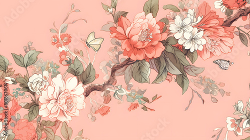 © yonshan, Fototapeta premium Digital vintage pen art flowers and leaf abstract graphic poster background