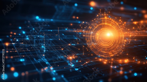 Obraz premium Digital vortex with glowing energy surrounded by intricate data patterns in a...