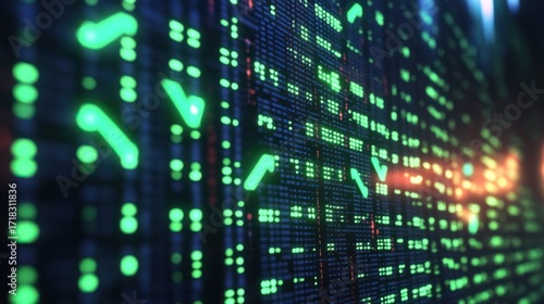 Obraz premium Digital wall with glowing green checkmarks and data