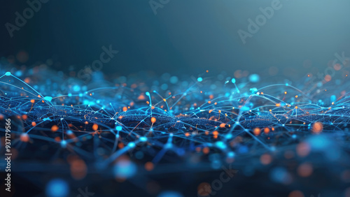 Obraz premium Digital Wallpaper: Interconnected Dots Forming a Complex Network in Dark Blue