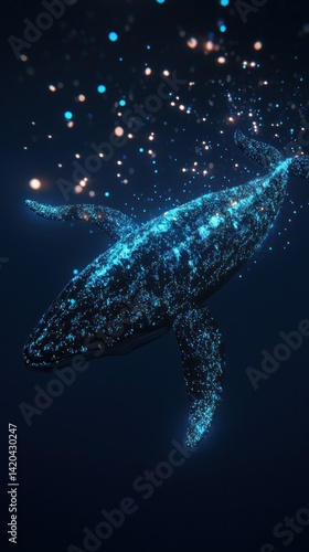 Fototapeta premium Digital whale, illuminated in deep ocean depths.