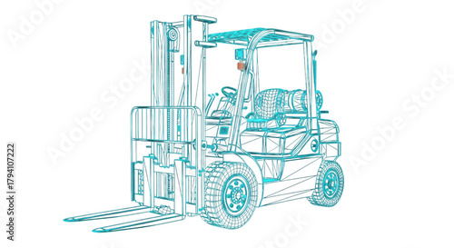 © cattar, Fototapeta premium Digital wireframe forklift model for logistics and industry concept