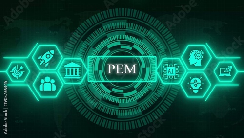 Fototapeta premium Digital with P E M central text surrounded by hexagonal representing...