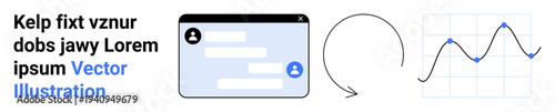 Fototapeta premium Digital workflows, business analytics, communication tools, process management, data exchange, feedback systems. User interface with chat messages, circular arrow and analytics graph. Business