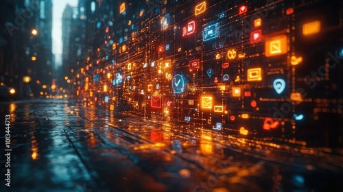 Fototapeta premium Digital Workspace with Social Media Icons - Digital Marketing Concept